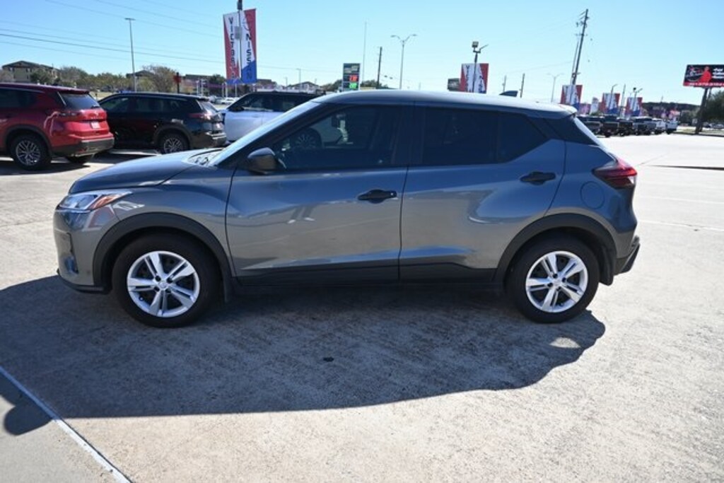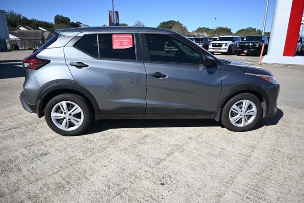Certified. 2025 Nissan Kicks Play S FWD 1.6L 4-Cylinder DOHC 16V CVT Gun Metallic Priced below KBB Fair Purchase Price!
